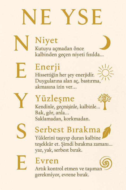 NE YSE kutusu, sana kendi içsel yolculuğunu hatırlatmak, yenilenme ve şifa ritüelini başlatman için hazırlandı.